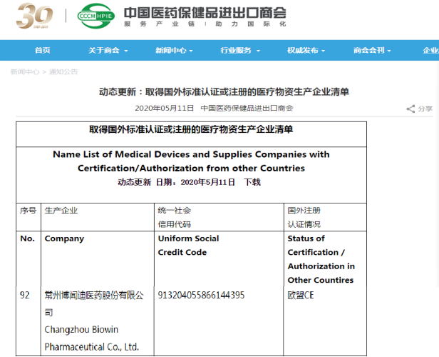 喜报!博闻迪进入国家防疫物资出口企业名单啦!